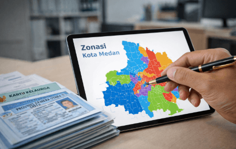 Persiapan dokumen kependudukan dan peta zonasi untuk mempraktikkan cara mengurus pindah rayon pada pendaftaran sekolah di Medan.