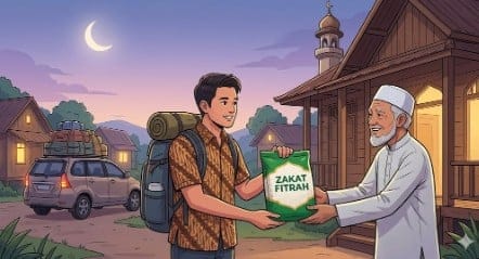 hukum zakat fitrah, zakat fitrah mudik, zakat fitrah kampung halaman, mudik lebaran 2026, zakat fitrah 1447 h, fiqih zakat, bayar zakat online, baznas, kemenag, mui, rukun islam, idulfitri, lebaran 2026, tata cara zakat, waktu bayar zakat.