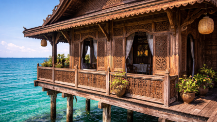 Satu hal yang perlu diperhatikan, pembagian ruang di dalam rumah nelayan tradisional sangat mencerminkan nilai-nilai sosial masyarakatnya. Sebagai bagian dari desain rumah pesisir, area teras biasanya berukuran cukup luas karena berfungsi sebagai ruang tamu sekaligus tempat memperbaiki jaring. Selain itu, posisi dapur sering berada di bagian paling belakang dan memiliki akses langsung ke dermaga kecil pribadi untuk memudahkan bongkar muat hasil laut. Namun, keindahan sebenarnya terletak pada detail ukiran di ventilasi udara yang sering kali mengandung motif-motif flora khas Melayu. Oleh karena itu, setiap bangunan bukan sekadar tempat berteduh, melainkan juga simbol identitas budaya yang sangat kental.