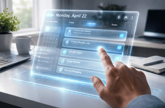 Seseorang mengelola jadwal harian menggunakan teknologi navigasi produktivitas AI tahun 2026.