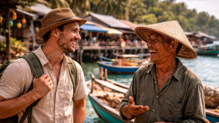 Interaksi hangat antara wisatawan dan warga lokal sebagai bagian dari tips wisata kampung nelayan yang berkesan.