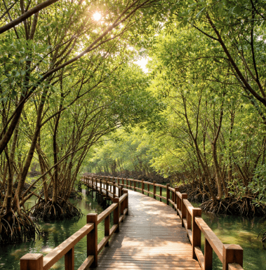 Pengunjung bisa berjalan menyusuri jembatan kayu yang membelah rimbunnya pepohonan bakau yang sangat asri. Oleh karena itu, lokasi ini sangat cocok bagi keluarga yang ingin mengenalkan pentingnya ekosistem pesisir kepada anak-anak secara langsung. Selanjutnya, kicauan burung-burung bakau yang sesekali melintas menambah suasana tenang yang sulit Anda temukan di pusat keramaian.
