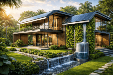 Anda harus menyadari bahwa industri konstruksi menyumbang limbah yang sangat besar bagi lingkungan hidup kita di Medan. Prediksi tren arsitektur rumah 2027 menonjolkan penggunaan material sirkular yang berasal dari hasil pengolahan kembali limbah industri. Oleh karena itu, penggunaan semen ramah lingkungan dan kayu hasil perkebunan berkelanjutan akan menjadi pilihan utama para arsitek ternama. Selanjutnya, pilihlah cat dinding bebas racun (Low VOC) guna menjamin kualitas udara di dalam rumah tetap sehat bagi anak-anak. Berdasarkan ulasan dari Kompas Properti, bangunan hijau memiliki nilai investasi jangka panjang yang sepuluh persen lebih tinggi.