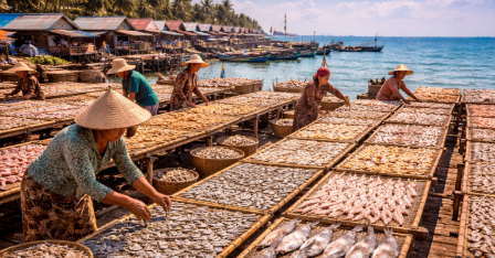 Ekonomi Kampung Nelayan, Ikan Asin, Pengolahan Ikan, Usaha Mikro, Pesisir Indonesia, Produk Lokal, Nelayan Tradisional, UMKM, Ekspor Ikan, Ketahanan Pangan, Strategi Ekonomi, Wisata Edukasi, Sumatera Utara, Bisnis Rumahan.