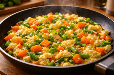 Langkah pertama adalah menyiapkan dua butir telur ayam dan sedikit irisan buncis atau wortel. Selain itu, Anda cukup menggunakan bumbu dasar seperti bawang putih dan cabai merah iris. Selanjutnya, tumis bumbu hingga harum kemudian masukkan sayuran hingga teksturnya menjadi sedikit layu. Oleh sebab itu, proses memasak yang singkat akan menjaga kandungan vitamin dalam sayuran tetap terjaga. Pastikan Anda menggunakan sedikit minyak zaitun atau mentega agar aroma masakan menjadi lebih menggugah selera.