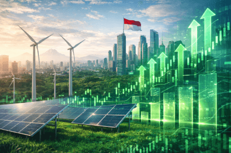 Visualisasi infrastruktur energi bersih sebagai gambaran prospek cerah saham sektor energi terbarukan di Indonesia.