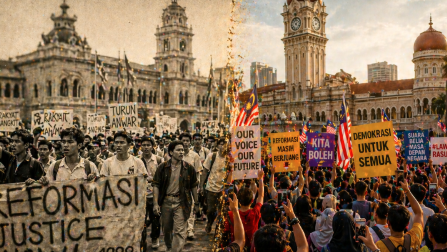 Visualisasi mengenai Sejarah Demonstrasi Masyarakat Kaltim yang terus berevolusi seiring perkembangan zaman dan teknologi.