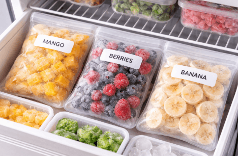 Label Tanggal: Tulis jenis buah dan tanggal pembekuan pada wadah.