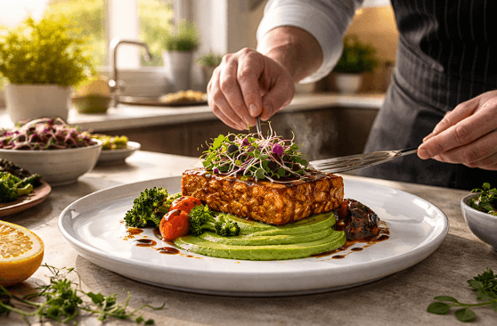 Salah satu inovasi yang paling mencolok pada tahun ini adalah penggunaan tempe sebagai pengganti daging kelas atas. Namun, pengolahannya kini jauh lebih modern dengan teknik marinasi yang rumit. Sebagai hasilnya, tekstur yang dihasilkan hampir menyerupai daging sapi premium. Selain itu, Anda bisa mempelajari Nutrisi Steak Tempe vs Daging Sapi untuk melihat betapa besarnya potensi protein lokal ini bagi kesehatan tubuh.