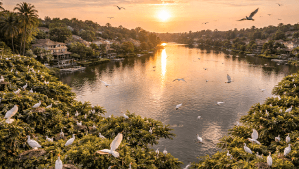 Menyaksikan Ribuan Bangau Terbang Bebas di Sore Hari